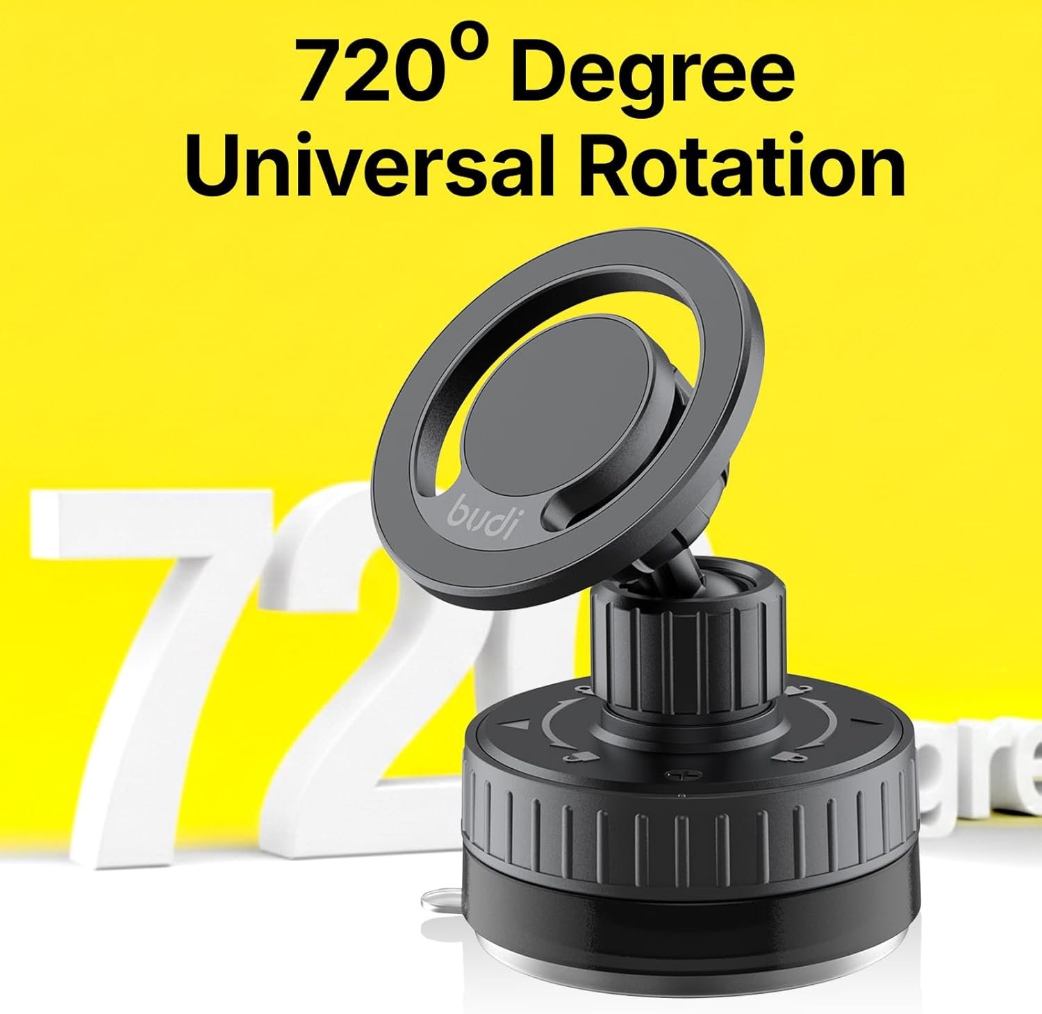 - 720° ROTATABLE DESIGN: Enjoy flexible viewing with the 720° rotating car phone mount. Adjust your mobile phone holder for car to any angle for navigation, calls, or music without blocking your view.